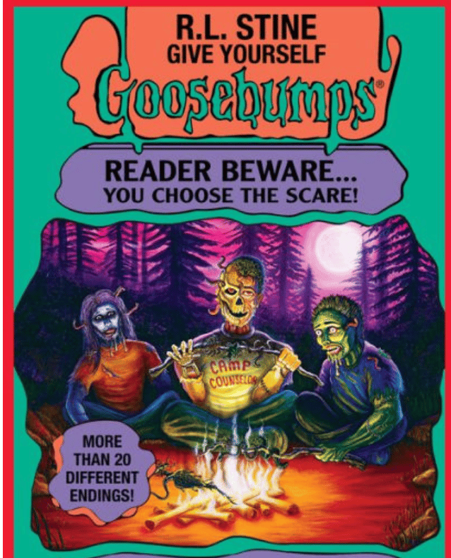 But of all the books I tucked away, checked out, or read, my childhood favorite was R.L. Stine books. Particularly Stine’s Choose Your Own Adventure series, “Give Yourself Goosebumps.”